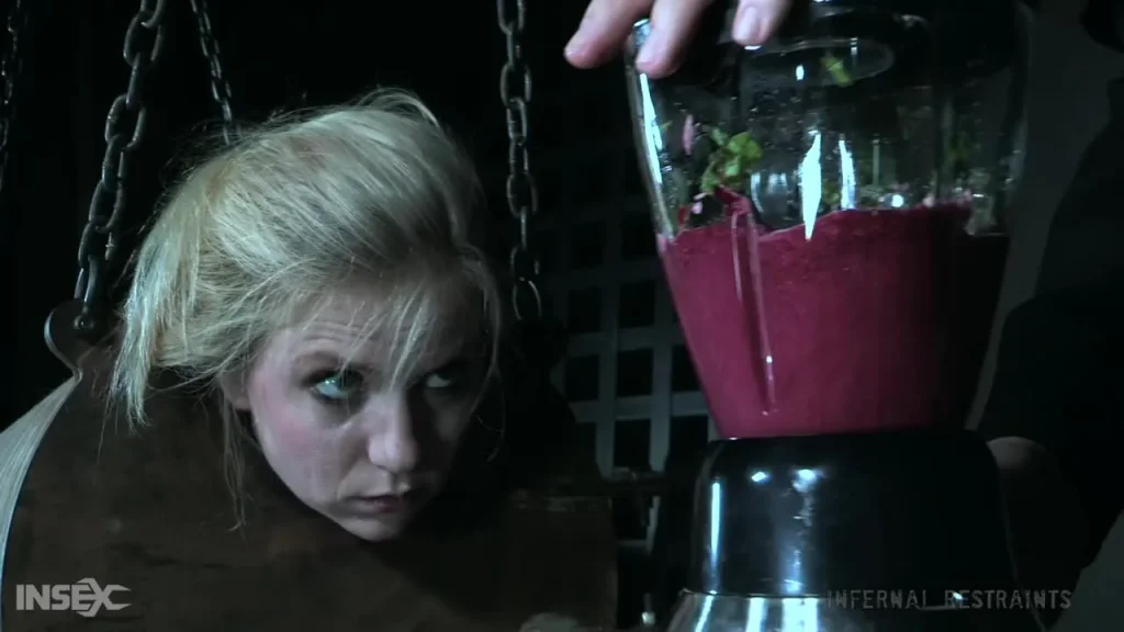 Alani Pi, a blonde white girl in her 20s with a slender build, is the star of this Dolcett Delight scene. She’s got a ponytail and high heels on, and she’s suspended in mid-air with chains and restraints on her wrists and ankles. The scene starts with her in a dungeon or BDSM room, with red marks already visible on her buttocks. A male performer, who remains unknown, enters the scene and starts spanking her with what looks like a flogger. The camera captures the action in a dimly lit room with a mix of medium and wide shots. Alani takes the spanking, and the scene continues with her in various bondage positions, showcasing her slender physique and the detailed restraints.