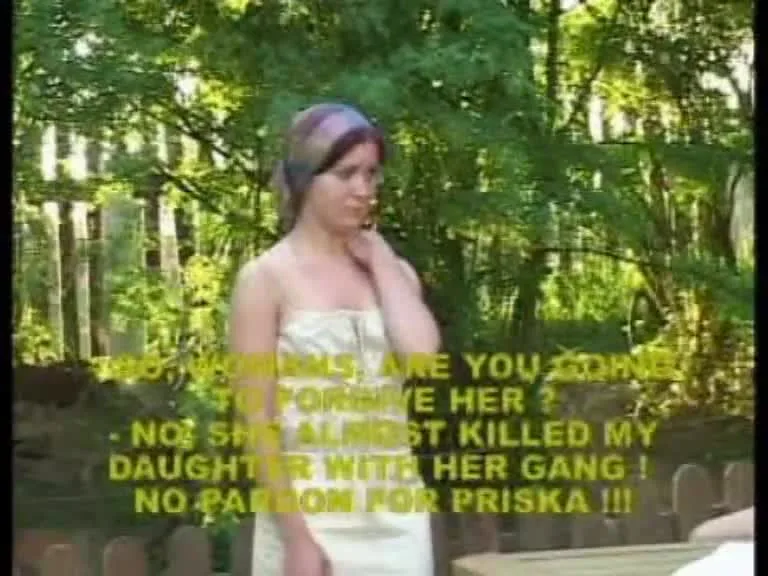 The video opens with a group scene featuring six white women in their 20s, all with different hair colors and body types, standing or sitting in a garden or backyard. One woman with a headscarf is on a bench while the others surround her. The camera pans across the group, showing their various physiques, from slim to curvy. A couple walks naked in the background. The scene shifts to a woman sitting on a bench, covering her face, and another woman with a headscarf looking down. The video features outdoor fucking in various positions, including doggy style and riding. The women have brown, blonde, and grey hair, and are described as slim, muscular, or curvy.